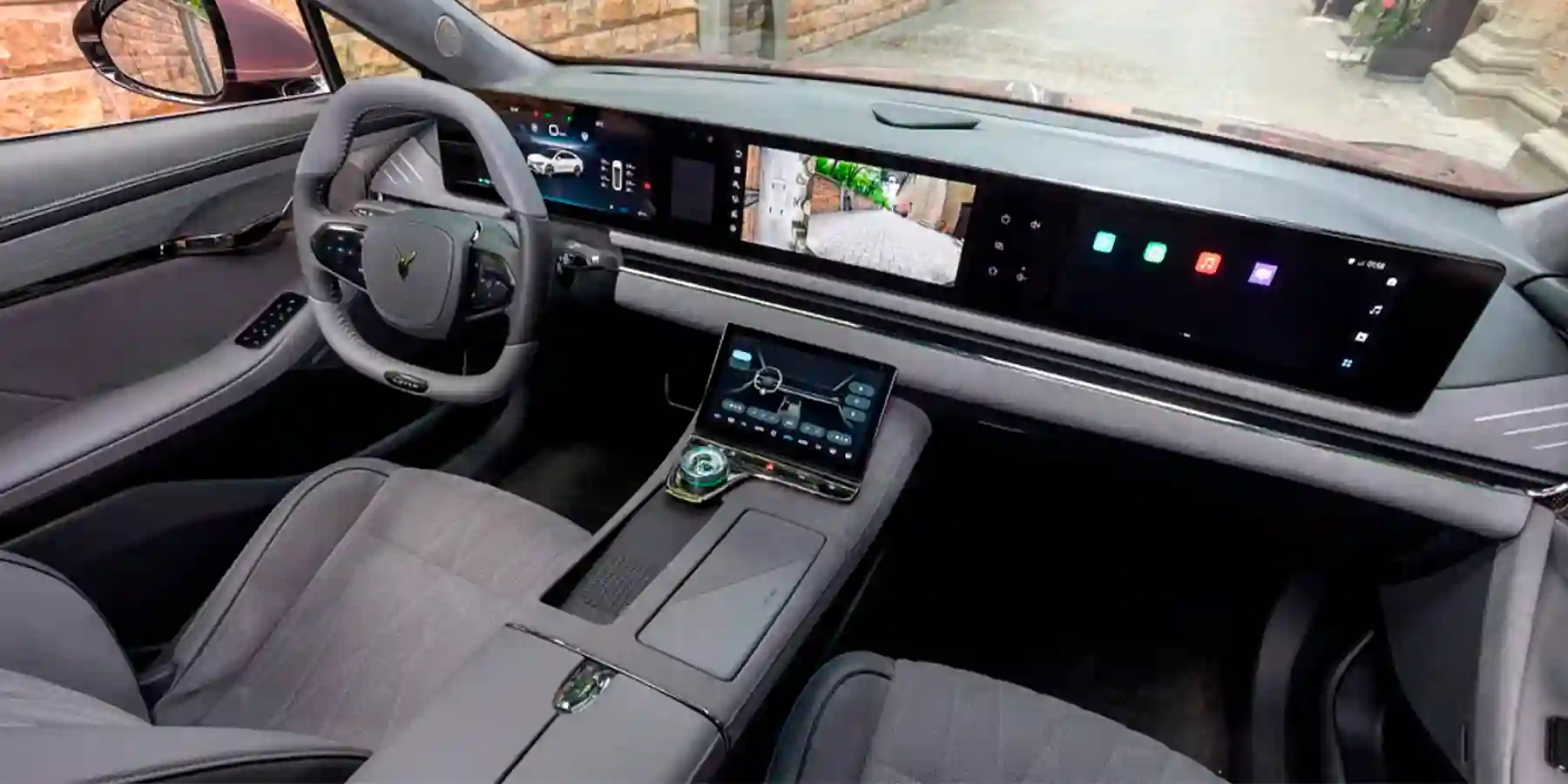 Подчеркнуто строгое и стильное оформление разочарует тех, кто ожидал увидеть помпезное убранство салона с двухцветной, простроченной ромбиками кожаной обивкой и богатой фурнитурой. Традиционное для многих современных машин «Made in China» управление функциями посредством многочисленных тачскрин-мониторов сочетается с обшивкой тканью и алькантарой. Фактурный оттиск на креслах добавляет внутреннему пространству благородства. Что ценно, интерьер не только приятен визуально и тактильно, он еще и по-настоящему качественно исполнен.