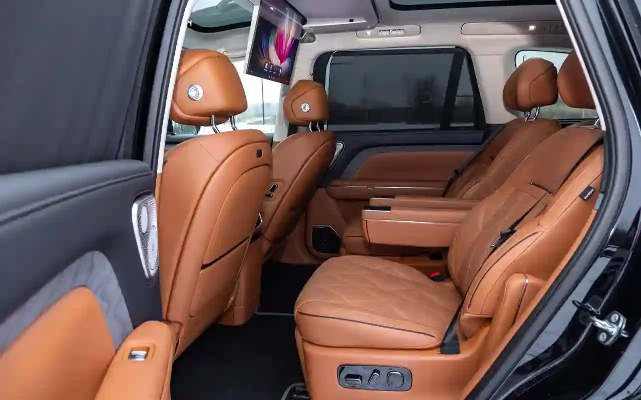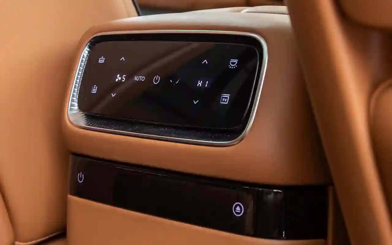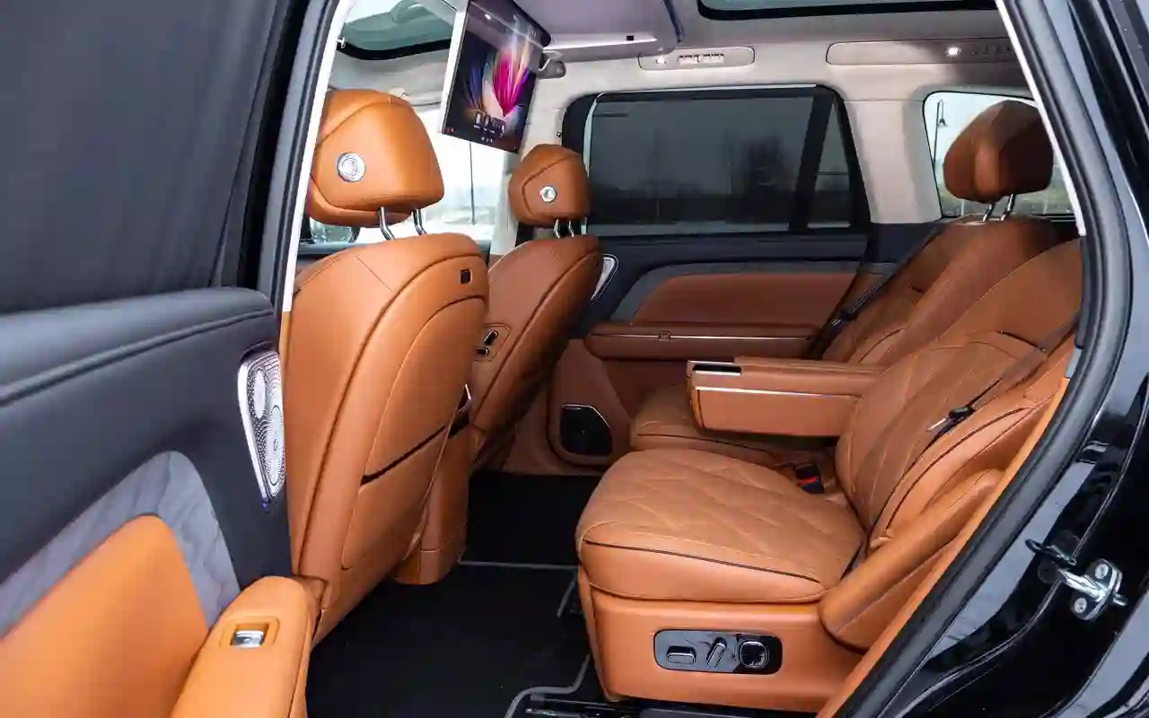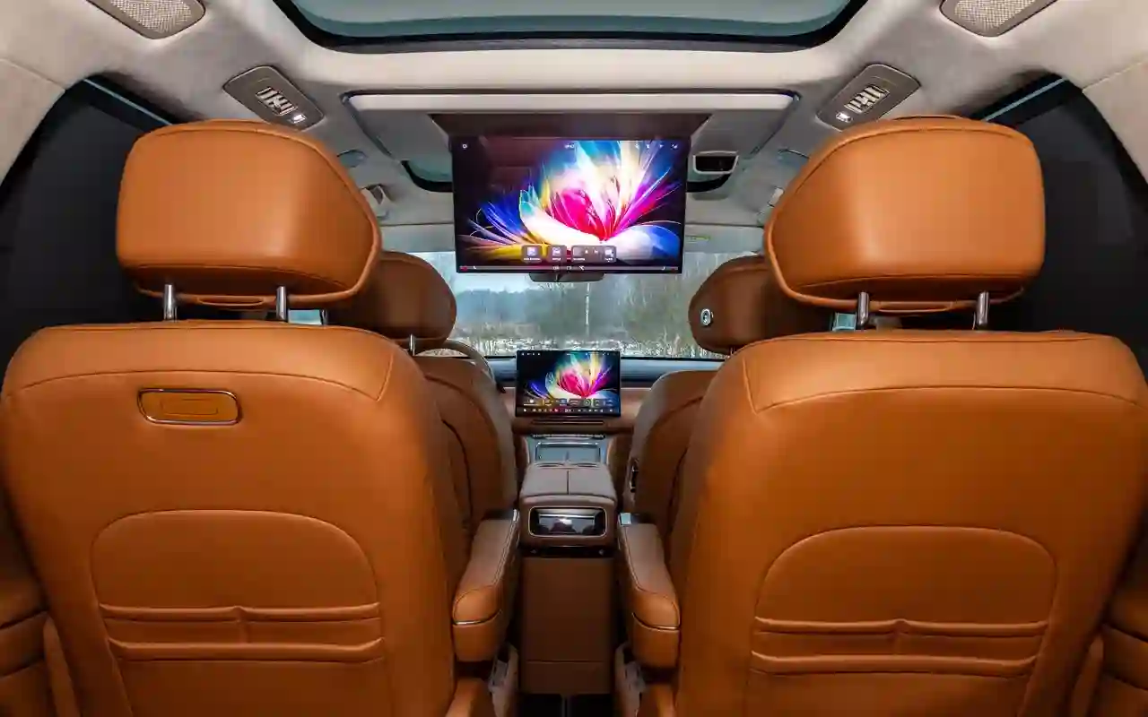 О банальных подогревах с вентиляциями говорить не имеет смысла. У каждого сиденья на втором ряду — отдельный 3,5-дюймовый цифровой пульт со всеми прибамбасами: хоть музыку включай, хоть караоке или видеоигру, либо же раскладывай в кровать, если захотелось вздремнуть. Откидной телевизор диагональю 21,4 дюйма на потолке, громадная панорамная крыша, электрические шторки на боковых окнах и столики в спинках передних кресел — все в VOYAH TAISHAN кричит о том, что пассажир здесь главный и машина только для него.