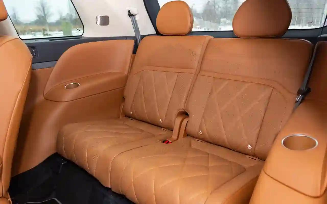 Погрузившись на драйверское место и нажав лишь одну клавишу на центральной консоли, можно подстроить его профиль эксклюзивно под себя: сиденье будто обволакивает спину с учетом анатомических особенностей. Такого мы, пожалуй, еще не встречали. Добавьте сюда 10-точечный массаж в спинках, 6-точечный массаж подушек первого и второго рядов и 4-точечный массаж для ног правого кресла во втором ряду плюс режим нулевой гравитации и вы попросту не захотите покидать эти апартаменты.